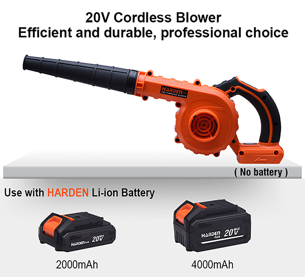 20v Cordless Blower *CE certificated *No load speed:0-14000Rpm *Max air speed: 22m/s *Max air volume: 1.5m³/Min *1Pc air hose *1Pc dust bag