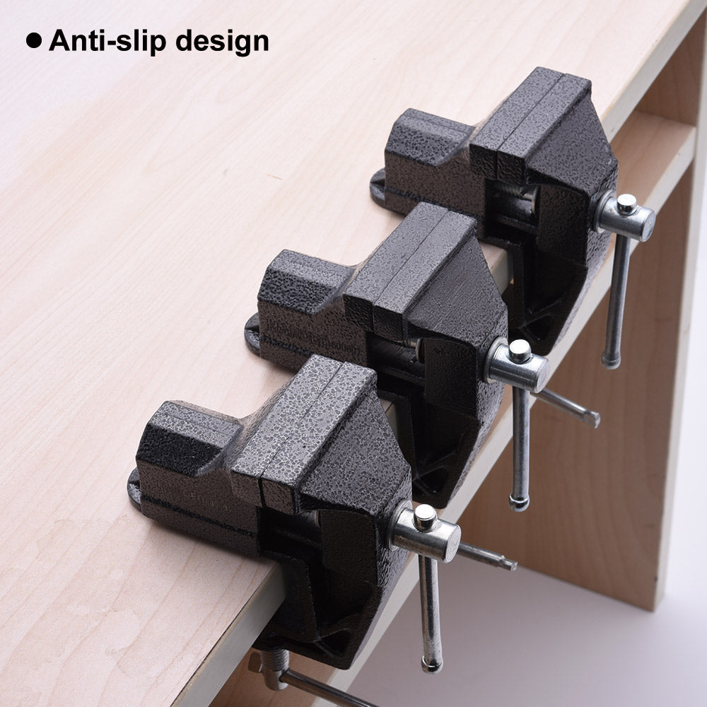 50mm Mini Bench Vice *Made from cast steel *Clamp width: 50mm *Calmp length: 32mm *Packed by color box