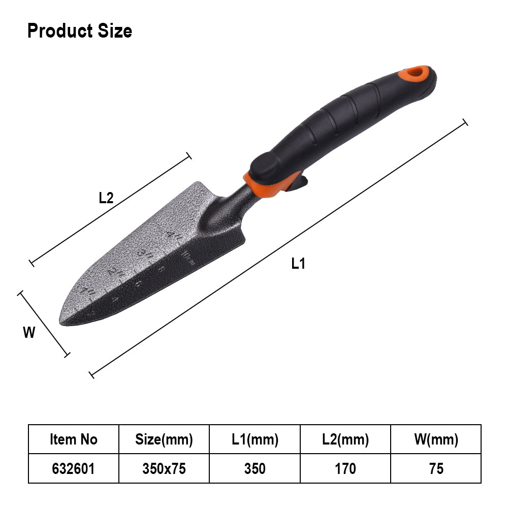 Mini Garden Shovel *Carbon steel, heat treated *Black power coating *Comfort TPR grip