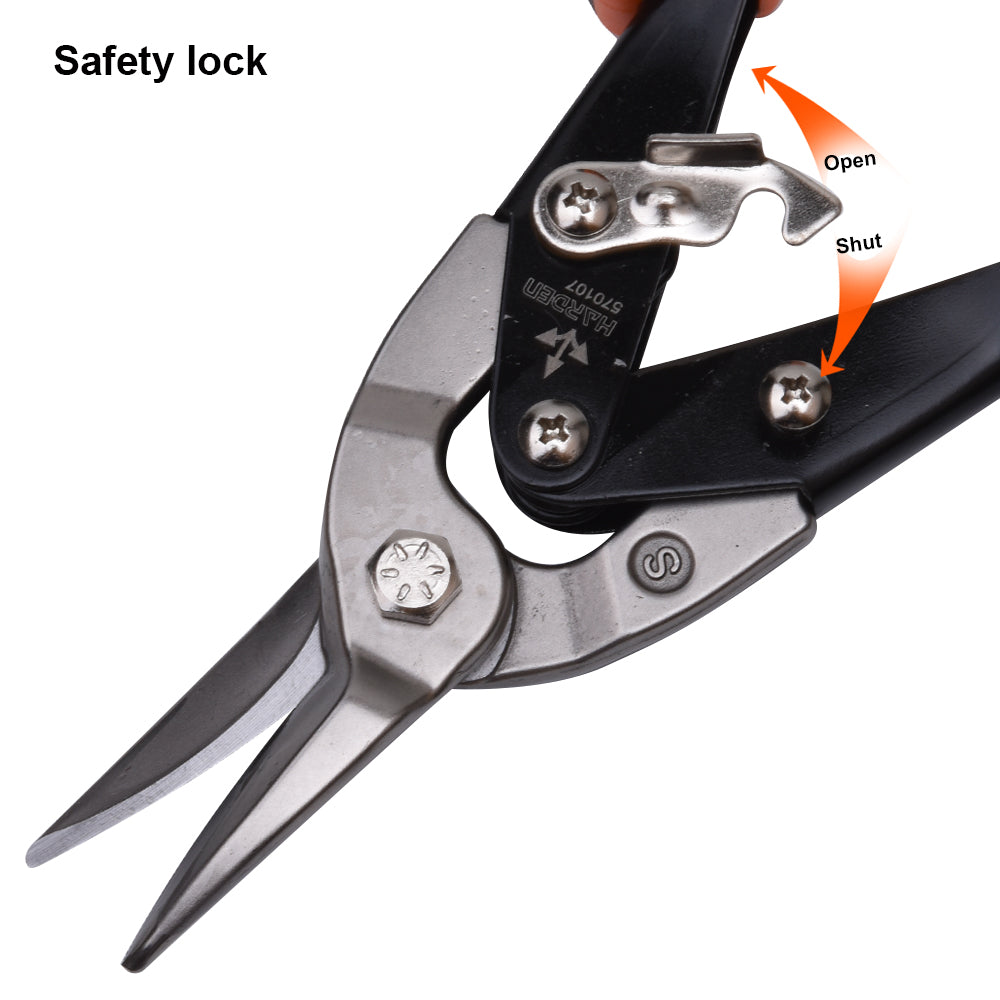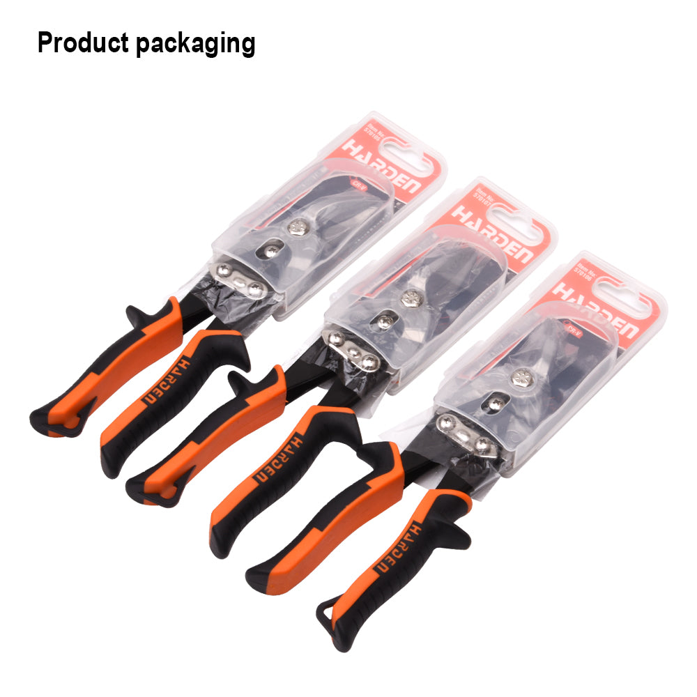 Taiwan Type Aviation Snips Straight *6150 chrome vanadium steel *Heat treated blade *Cutting ability: max 1.25mm cold rolling iron sheet and 0.8mm stainless steel sheet *Ergonomic comfort grip handle