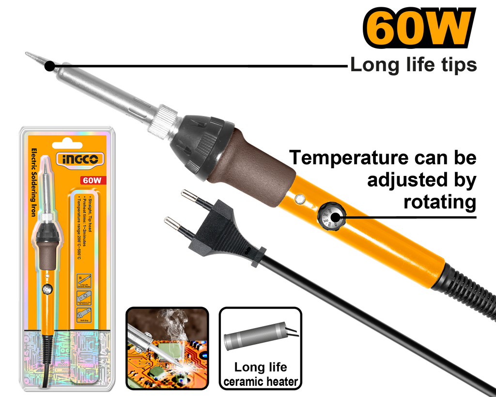Voltage:220-240V~50/60Hz Input power:60W Preheat.time:1~2minutes Straight, tip head