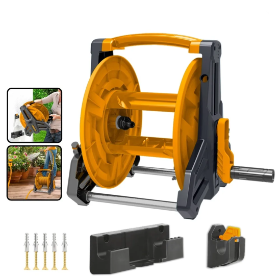around 1/2" water pipe 40 meters Foldable handle for easy storage Aluminum tube bracket, can be hung on the wall