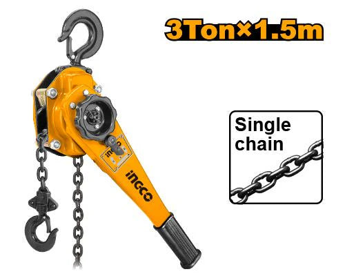 Rating lifting weight: 3 Ton Lifting height:1.5 m Strands of load chain:1 Minimum distance between two hooks:460 mm Pulling force at full load:320 N Net weight: 17.5 kg Packed by wooden case