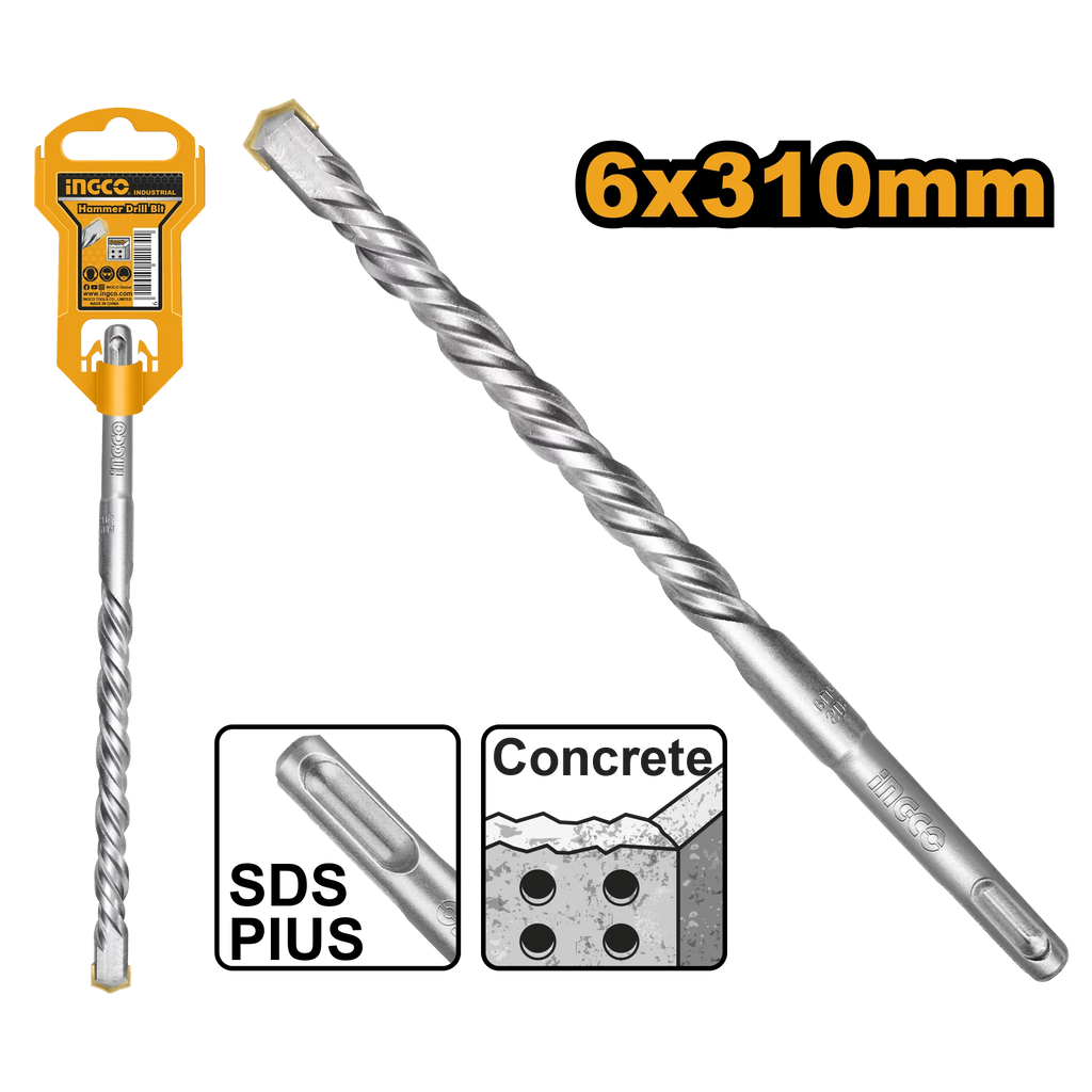 6 X 310mm,SDS plusThe cemented carbide head improves the strength of the bit tip and the product has a long service lifeThe products are suitable for masonry, concrete and other drilling operationsPacked by plastic hanger