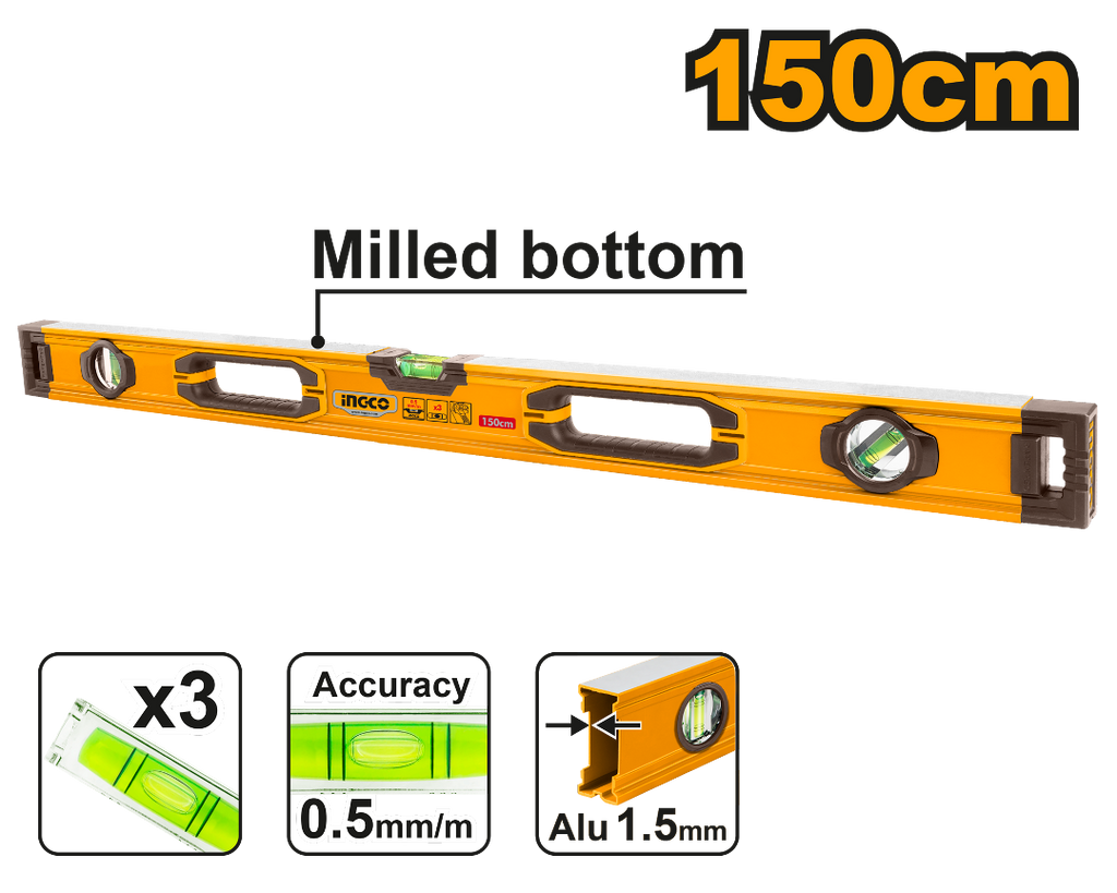 Length:150cm Double side milled0.5mm/m accurate vials Thickness:1.5mmV-shape slot for measuring objects with round surfacePacked by color sleeve