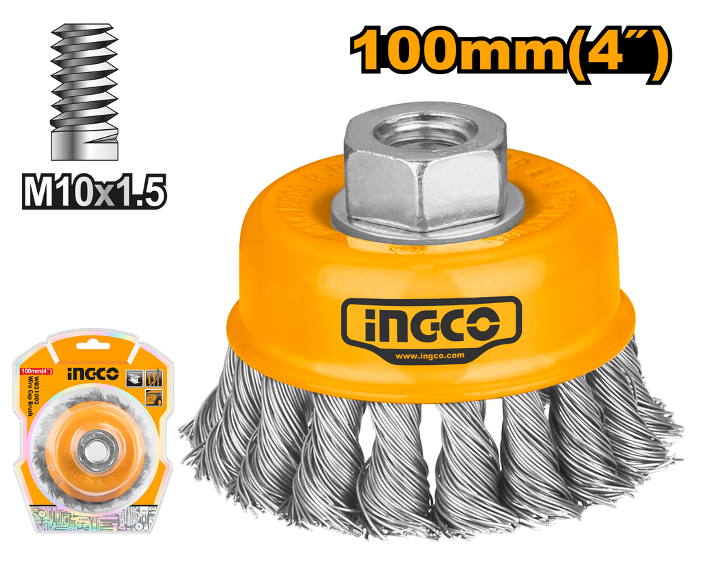 Dia: 100mm, 4" Thread: M10x1.5 Wire dia: 0.5mm Wire length: 30mm RPM: 8500r/minApply on: roughening, descaling/paint stripping, weld seamsSuitable for: Steel, Cast steel Packed by double blister