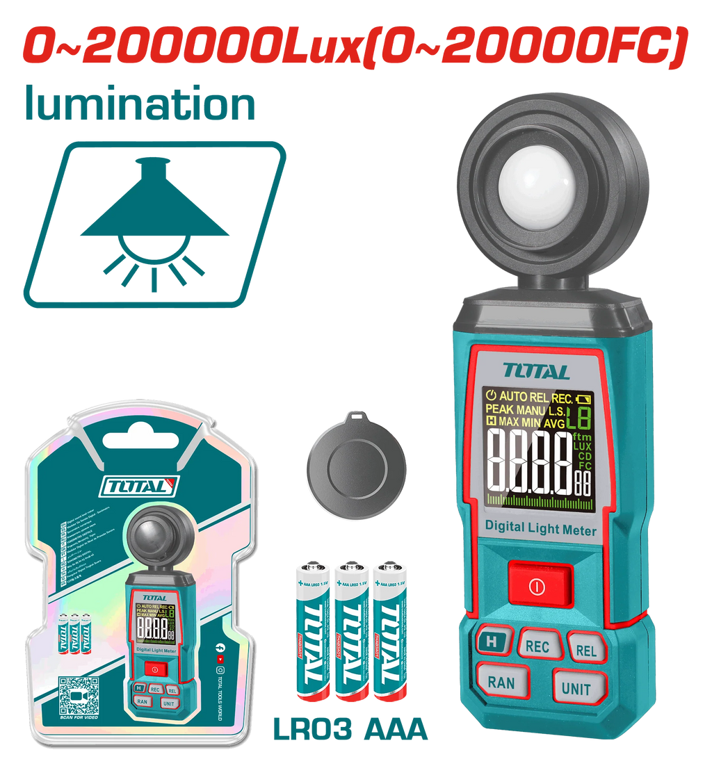 Resolution:1LUX/1FC Accuracy:±(3%+5Lux) (at 2854°K incandescent lamps) ±(6%+5Lux) others Cosine angle deviation characteristics:30°(±2%)