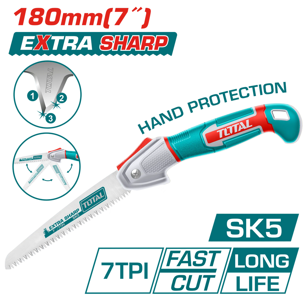 Size: 7"/180mm Material: SK57TPI,heat treatment teethTriple teeth(Precision ground teeth 3 edges) With hand protection functionFast cut and long life Packed by sliding card