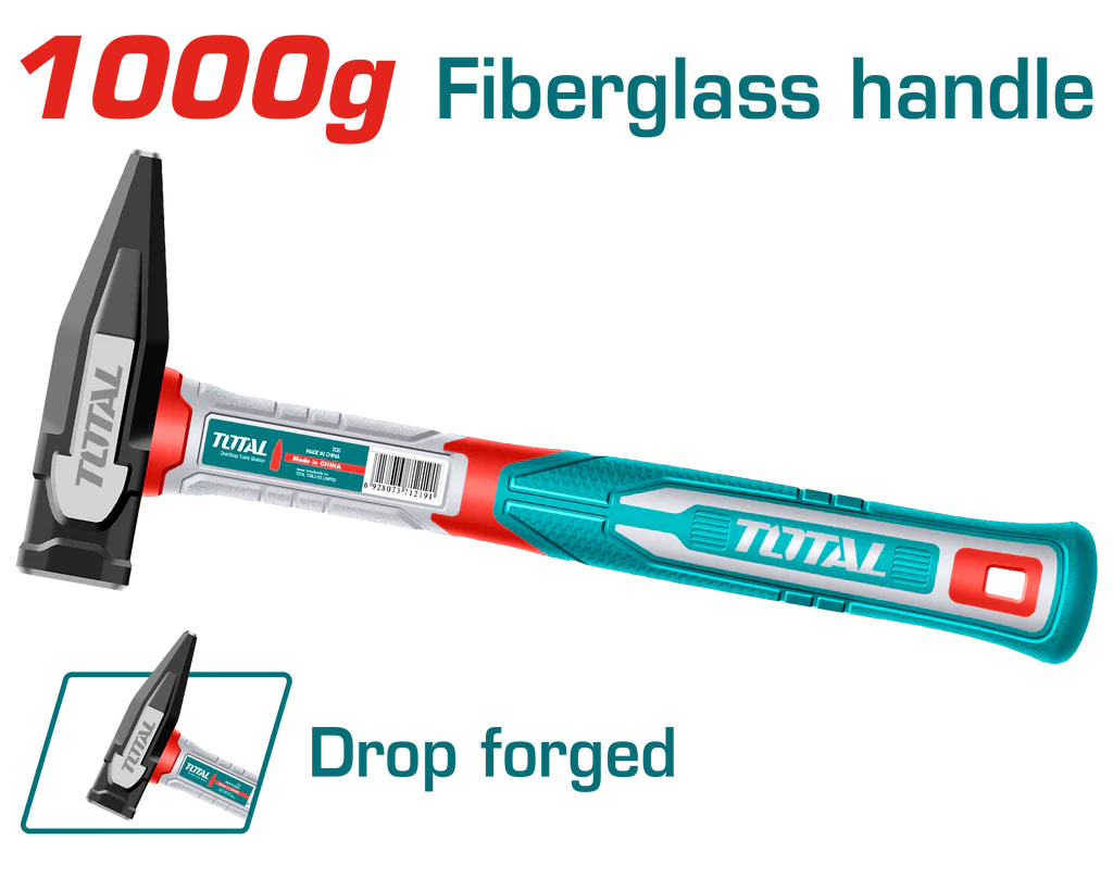 Weight:1000gInnovated drop-forged hammer head Heat treatment,45# carbon steel Strong three-color fiberglass handle for comfortable gripePacked by label