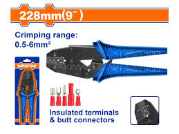 Crimping range: 0.5-6mm²For insulated terminals and butt connectors AWG: 20-10Length: 9"Unique design ABS handlePressure force can be adjusted, fit for various terminalsPacking by sliding card